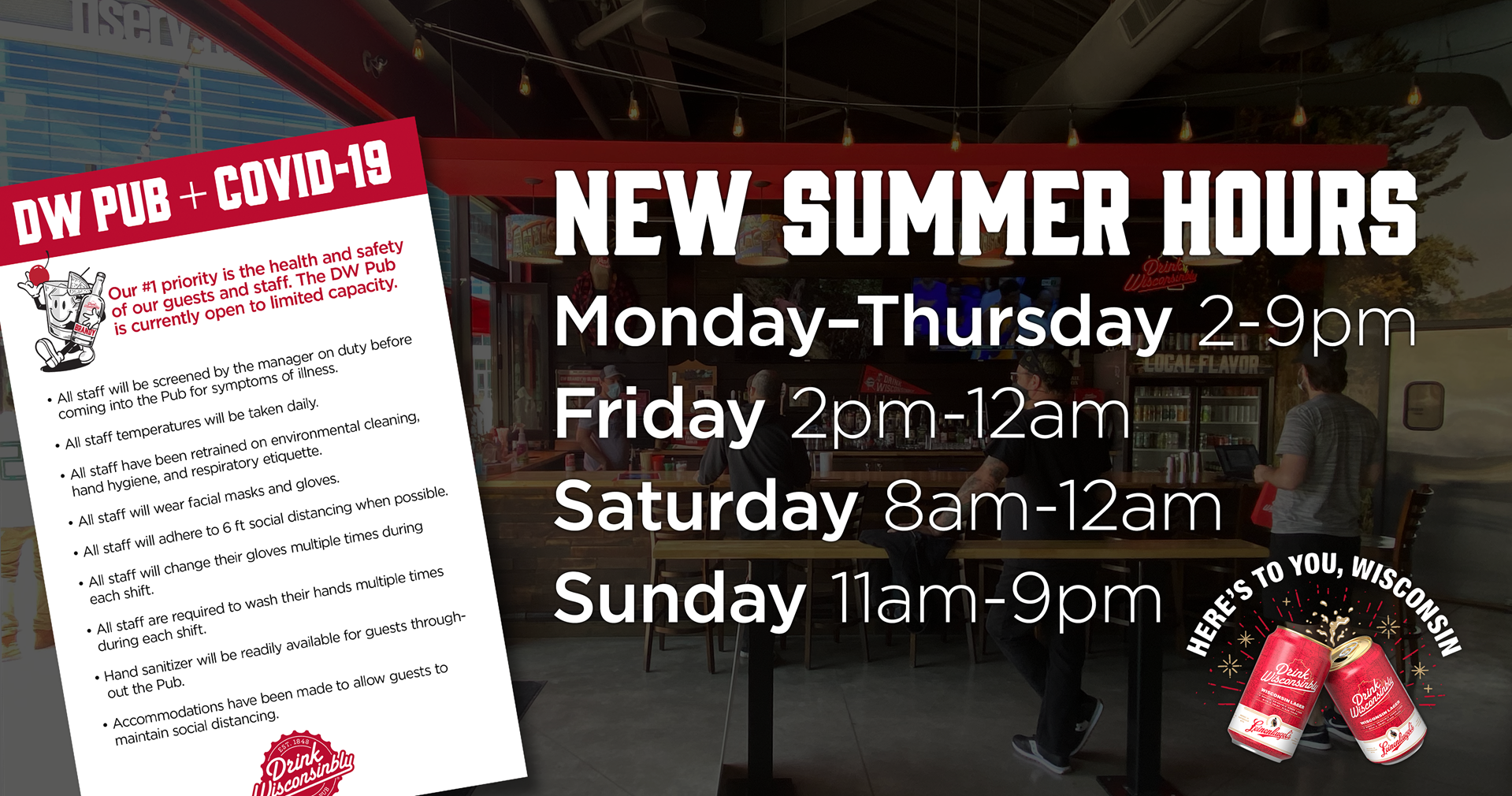 DW Pub has extended patio & safety measures as well as a brand new birch bar with beer and brandy Old Fashioneds on tap!