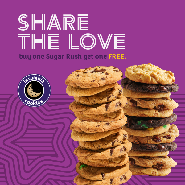 Share The Love Special - buy one sugar rush (12 cookies) and get one free every weekend now through July!